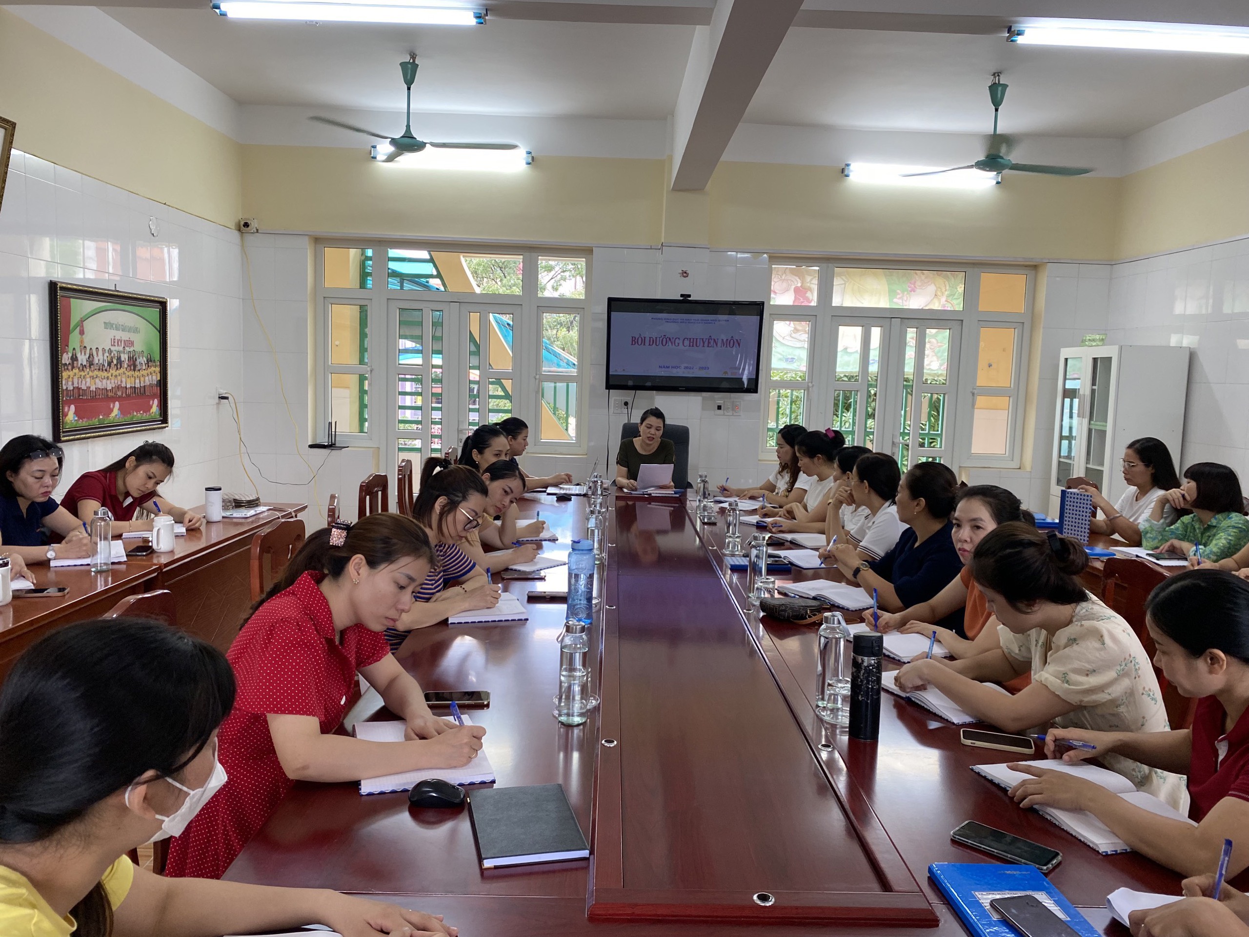Nhận thức được điều đó ngày 20/8/2022 nhà trường đã tổ chức BDCM cho 100% CBGVNV và các nhóm lớp MN ngoài công lập với những nội dung: Một số văn bản quy phạm pháp luật liên quan đến GDMN, chuyển đổi số trong GDMN, Xây dựng khung KH cho trẻ khuyết tật học hoà nhập, Dinh dưỡng trong nhà trường.