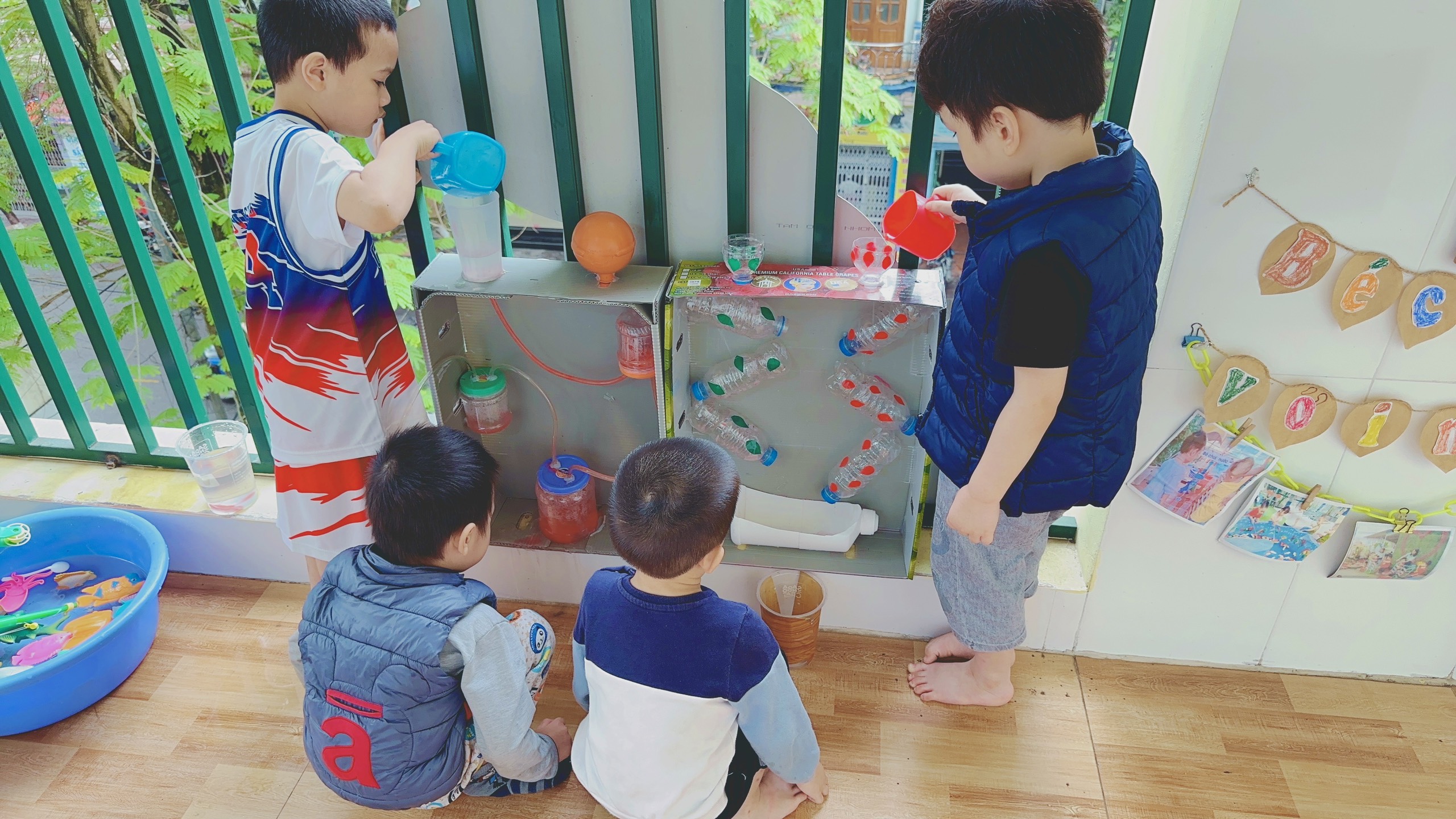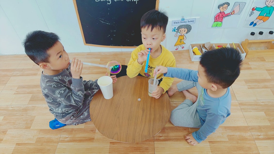 Thực hiện chuyên đề “ Xây dựng trường mầm non lấy trẻ làm trung tâm” các lớp xây dựng góc thiên nhiên hàng ngày cho trẻ hoạt động ngoài trời để khám phá thiên nhiên, cây hoa lá có trong vườn trường, khu khám phá khoa học với các trò chơi như: Chơi với cát, chơi với sỏi, pha và thổi màu, thả chìm nổi, làm tranh từ lá, vẽ tranh cát, đong đo nước...tạo môi trường an toàn, sạch đẹp, tạo hình ảnh và ấn tượng riêng của lớp mẫu giáo 4-5 tuổi. Việc tạo môi trường giao tiếp cởi mở, thân thiện giữa cô với trẻ, giữa trẻ với trẻ và giữa trẻ với môi trường xung quanh và đã tạo cơ hội cho trẻ được chia sẻ, giãi bày tâm sự, nguyện vọng, mong ước của trẻ với cô, với bạn bè, nhờ vậy mà cô hiểu trẻ hơn, trẻ hiểu nhau hơn, hoạt động phối hợp nhịp nhàng hơn nên hiệu quả hoạt động cũng cao hơn, trẻ yêu trường, yêu lớp, yêu cô giáo và bạn bè hơn.