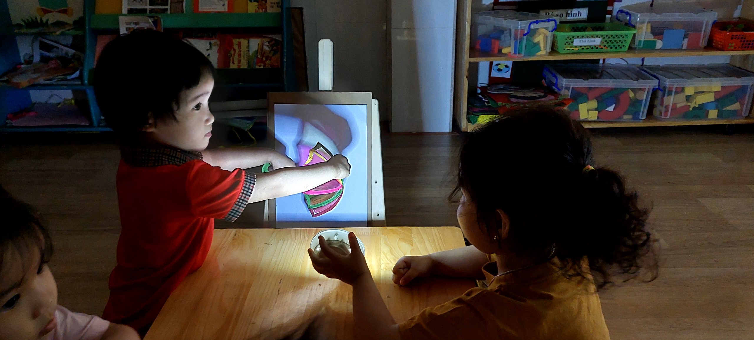 Với dự án “Ánh sáng”, trong một tuần các bạn nhỏ 3A3 sẽ được tìm hiểu về ánh sáng tự nhiên, ánh sáng nhân tạo, ánh sáng mang lại cho con người giá trị như thế nào? Ánh sáng liên quan gì đến sự vận động của vũ trụ?…. Để xây dựng được dự án với những tiết học về ánh sáng không hề dễ dàng, các cô giáo của 3A2 đã nỗ lực rất nhiều, tìm tòi, quan sát và chọn lọc để làm sao đưa những nội dung, kiến thức phù hợp với lứa tuổi mầm non.